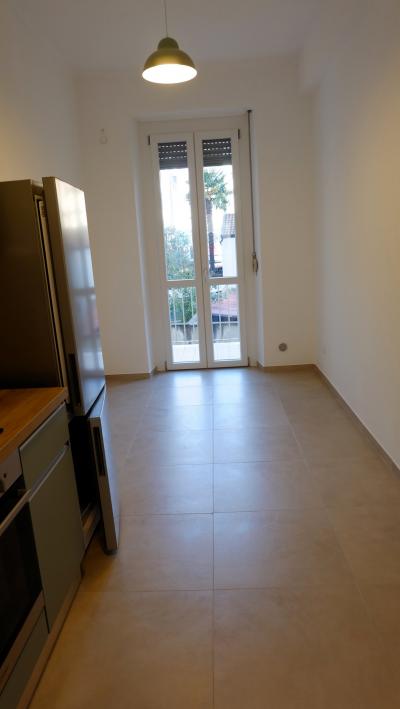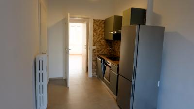 Ingresso, due camere spaziose (ideali come camera da letto e soggiorno o studio), cucina arredata con mobili ed elettrodomestici nuovi, bagno moderno e finestrato, ripostiglio/lavanderia con lavatrice, balcone e cantina di pertinenza.