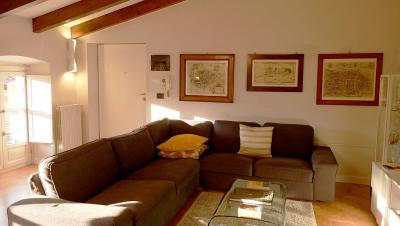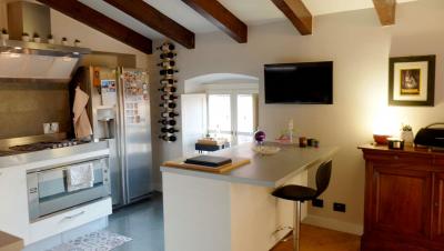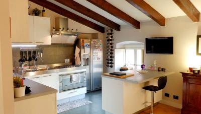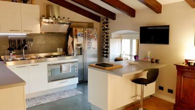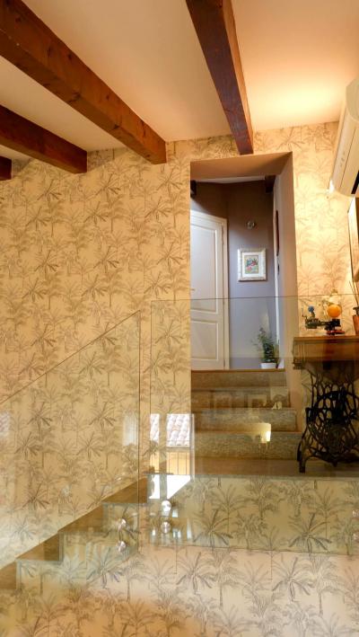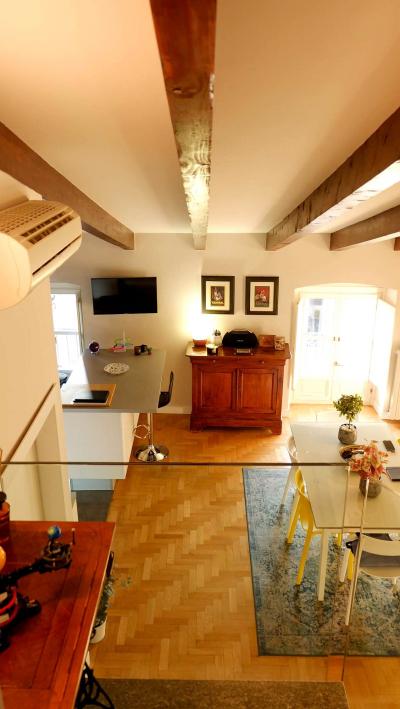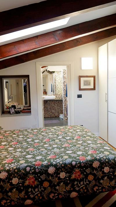 Ciò che rende questa proprietà davvero speciale è la sua forte identità: i soffitti con travi a vista donano calore e carattere, la scala con affaccio in vetro crea un elegante gioco di trasparenze, mentre i bagni, rifiniti con mosaici e materiali di pregio, raccontano un’attenzione al dettaglio. La pavimentazione in parquet contribuisce a rendere gli ambienti accoglienti, mentre le finestre affacciate sulla via storica e i Velux garantiscono una luminosità naturale. Alcuni arredi su misura, perfettamente integrati negli spazi, vengono lasciati dalla proprietà.