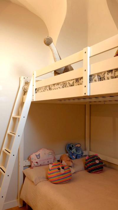 Attraverso una scala a vista in pietra, arricchita da particolari in vetro che ne esaltano la leggerezza, si accede alla zona notte. Qui troviamo un disimpegno, una camera matrimoniale con bagno dedicato, una seconda camera e un ulteriore servizio.